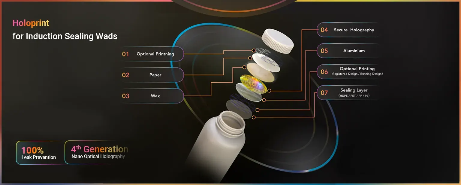Holoprint’s induction seals offer state-of-the-art solutions for tamper-evident packaging, ensuring product safety and authenticity. With customizable designs and integrated security elements like QR codes and holography, these seals provide unparalleled brand protection and user confidence.